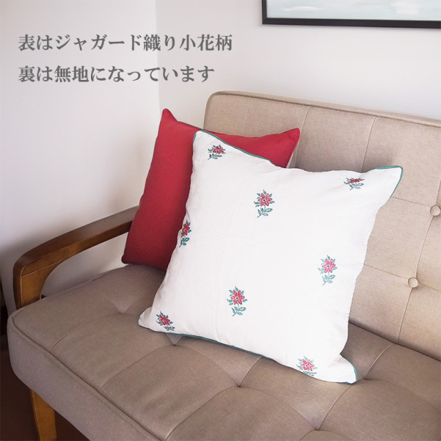 【サイズ】45×45cm 小花柄、ジャガード織りのかわいらしく品のいいクッションカバーです。ファスナー付きなので、カバーのかけ替えも簡単です。